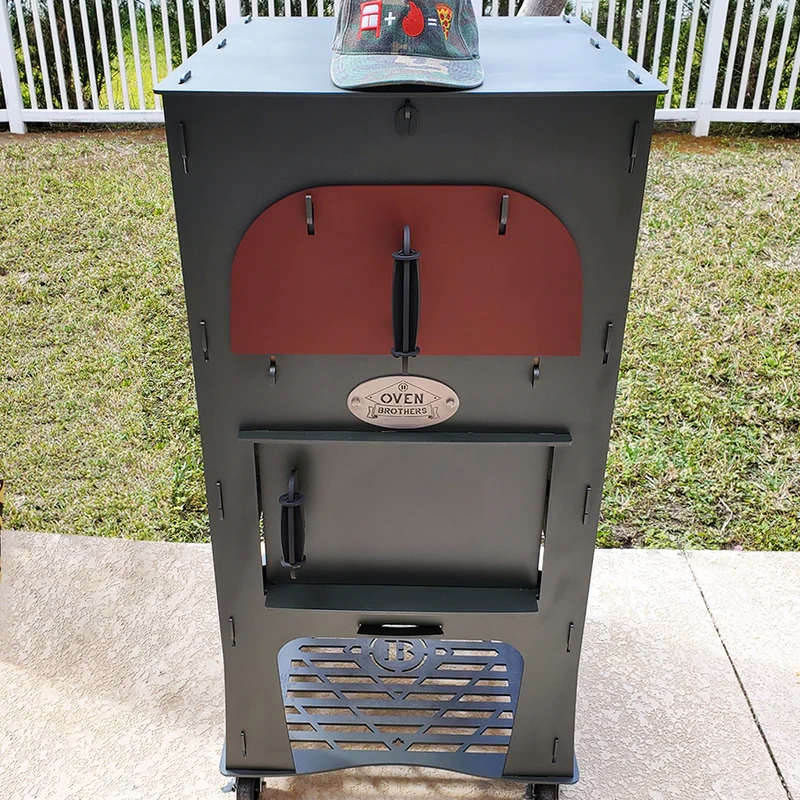Our patented no tools assembly wood fired oven design allows for a more heat efficient cooking surface than other traditional outdoor stone pizza ovens. Using thick high-quality carbon steel that has been CNC laser cut along with high-quality fire brick results in an oven that will outlast the competition, retains more heat, burns less fuel, and requires minimal to no maintenance. Did we mention that you can disassemble your oven and take it with you? Check out our technical specifications, and you'll see how an Oven Brothers outdoor wood fired oven will allow you to 'Discover Your Inner Chef'.